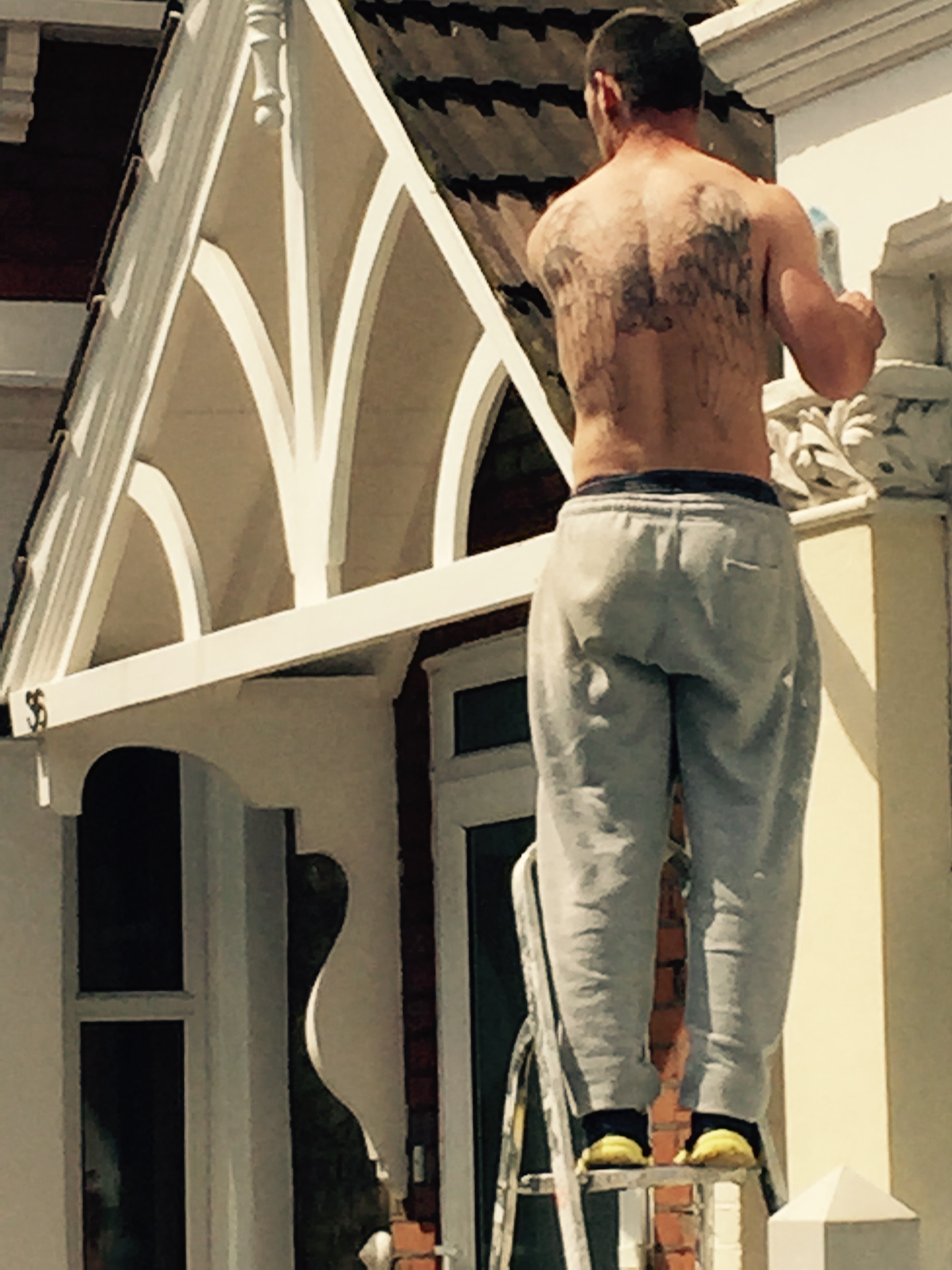 And so when we want to ‘see’ James we look up to the sky. I’m not sure what the kids think they are looking for but Flynn came rushing through the front door last week; “quick Mum, get out here right now.” So I followed him out the front door whereby he lead me to our neighbour’s house. It was being repainted. I then saw what had piqued his interest. His voice turned to an almost inaudible whisper. “He’s fallen”, “who’s fallen?” I asked “that one, look Mum, look!” he said and then I saw the wings.