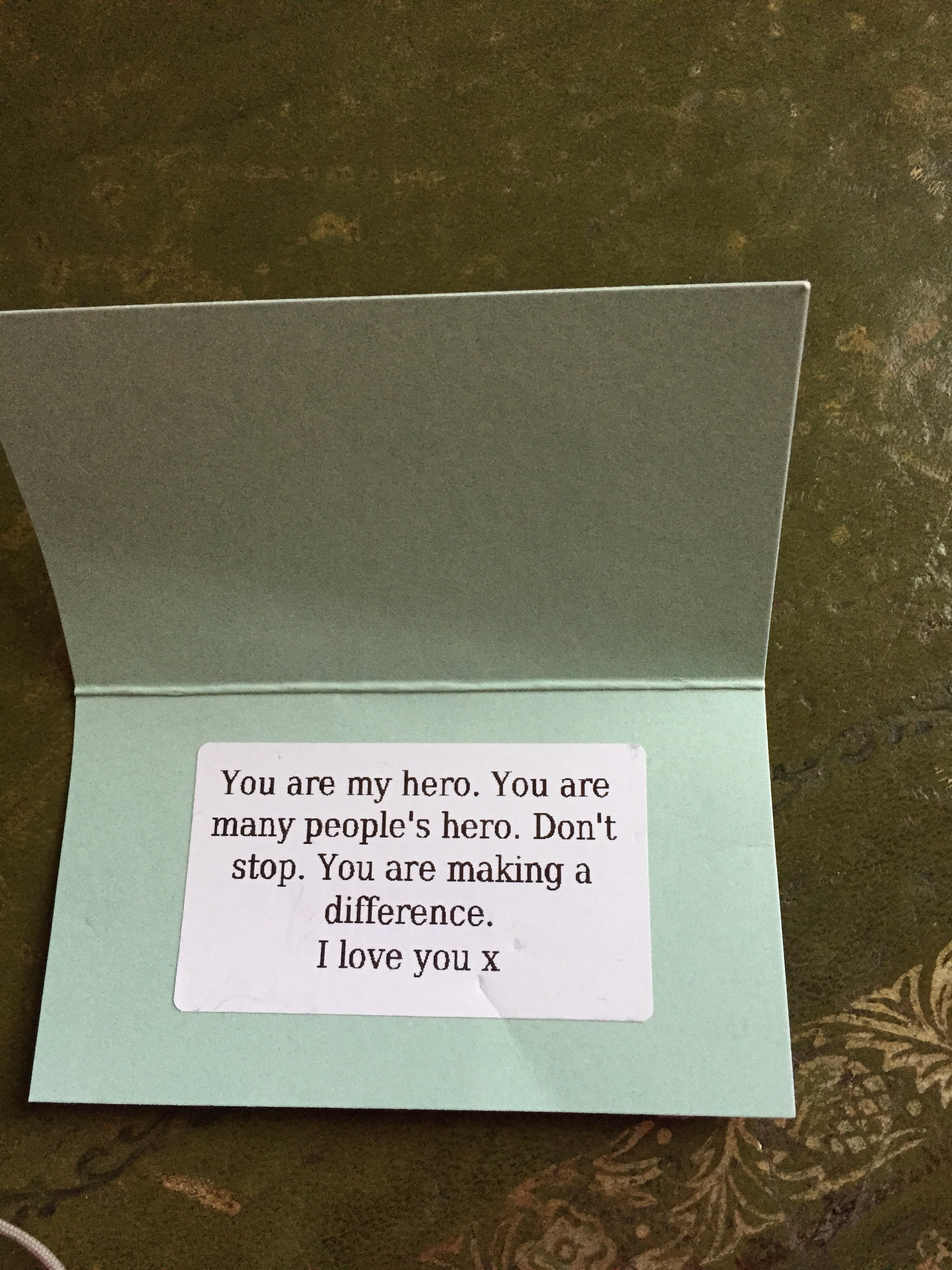 I am blessed with a very crazy daughter and a very kind son. When Flynn wakes up in the morning, he takes himself downstairs and makes himself breakfast and puts on his favourite shows on Netflix. When I ask (gratefully) why didn’t you come get me? He just says “I didn’t want to wake you.” He is indeed his father’s son. This leaves me to often wake up alone. This would often be the case when I was married to James but obviously without the sadness. Usually Celeste slept with James and although we have the most ridiculously giant bed, I was pushed out and would sleep in Celeste’s room. I often peeped in at them sleeping in this way and they looked like twins (if you ignored the beard). So mornings are often for mourning, in that five minutes I get before they realise I am up. The sadness stops often when the post comes and here is why. Because people are amazing and here are some of the things I have been sent in the mail, sometimes even email.